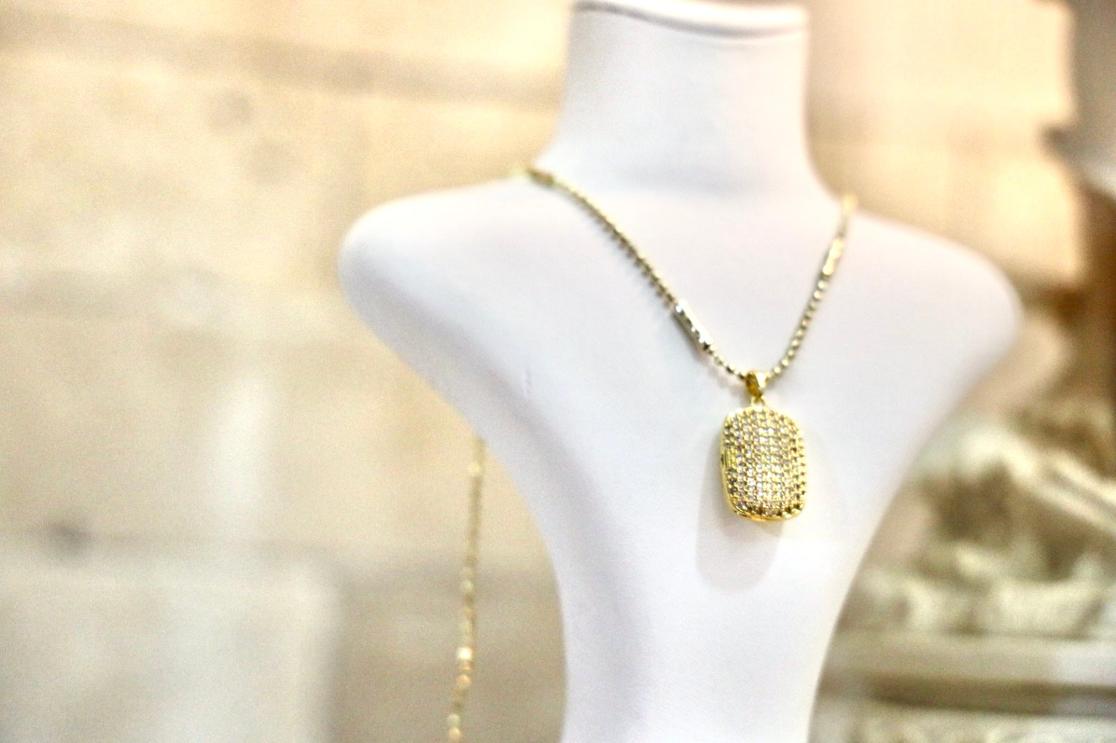 שרשרת אלגנטית ועדינה שמפיצה ברק רך בכל תנועה. התליון המעוצב בצורת מלבן משובץ באבני קריסטל נוצצות שמעניקות מראה יוקרתי ונשי. מושלמת לשילוב עם כל סגנון – יום או ערב.